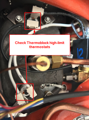 Most Common Cause: High-Limit Thermostats are tripped on thermoblock